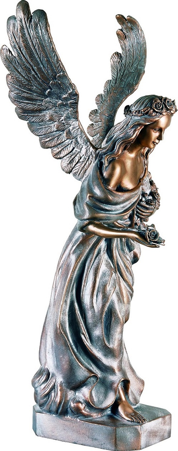 Kip anđela s cvijećem poznatiji kao Kip Anđeo Cvjećarica presvučen bijelom patinom za groblje, nadgrobne spomenike, crkve ili svetišta.